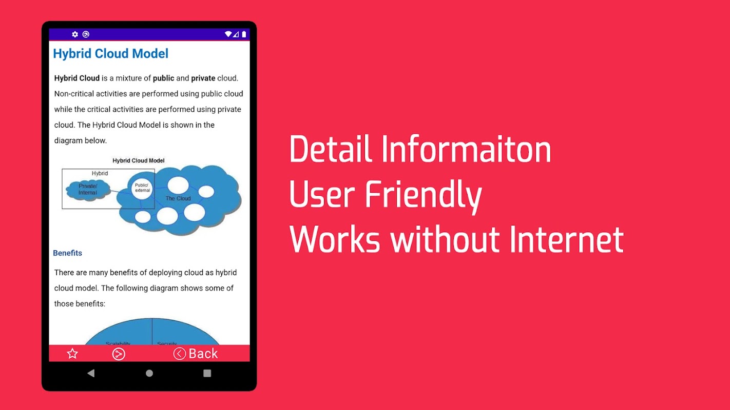 Learn Cloud Computing Offline is an educational application. If you are looking for basic cloud computing tutorial app so you are in a right place. This application will provide you most important & informative lessons. This basic cloud computing book app will give you definition and classification.