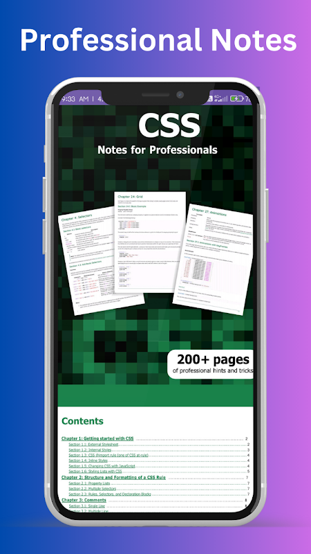 50 से अधिक ऑफ़लाइन पाठों के साथ, यह ऐप आपको नवीनतम सीएसएस मानकों को सिखाता है और सीएसएस कोड को प्रभावी ढंग से सीखने के लिए आपको वह सब कुछ प्रदान करता है जो आपको जानने की आवश्यकता है।