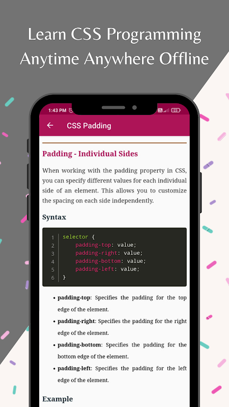 * उपयोगकर्ता के अनुकूल इंटरफेस: एक साफ और सहज डिजाइन का आनंद लें जो सीएसएस सीखना आसान बनाता है।