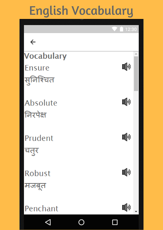 * Learn English using Nepali language and acquire the skills which are are looking to achieve. This application provide skills in Basic English. You will start preparing yourself to learn Business English. Finding out common mistakes in English and common errors in English is important. You will be able to do so after going through this app, to a large extent. You will learn some English Vocabulary after completing which you will be able to go ahead and learn Synonyms and Antonyms. Using our apps, you can learn languages free. You can thereafter proceed with learning English Grammar and Parts of Speech. This app can also be used as a Nepali to English phrasebook. What is for sure is that you will be able to learn English Vocabulary Daily. You will also be able to learn as to how to speak English Fluently in 30 days. First learn this and then go ahead and then you can also use an English Idioms and Phrase Dictionary. This app can also be useful for those who want to learn English for Competitive Exams. You can also hereafter jump-start with a Group Discussion app or an Interview Questions and Answers app. Learn how to speak English fluently in 30 days. Many can also use this app as a Learn English Magazine app. This app can be used to improve English for BPO Interview. You will also be able to Learn English words daily. You will slowly become more familiar with English verbs. A warm welcome is also extended to those who want to learn English for Bank Exams - English for Banking. Some can use this for SSC preparation. To put it in simple words, play and learn English using this offline app. You will become better with Nepali to English speaking if you also use a Nepali to English dictionary or English to Nepali dictionary apart from this application. You will learn much more than the casual hello and hi. Get to learn English to Nepali translation.