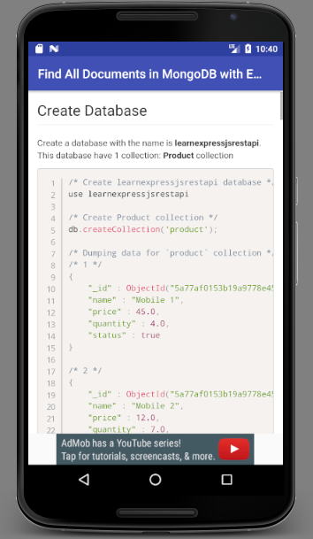 11. ढूँढें दस्तावेज़ तक Express.JS बाकी एपीआई और नेवला साथ MongoDB में ईद