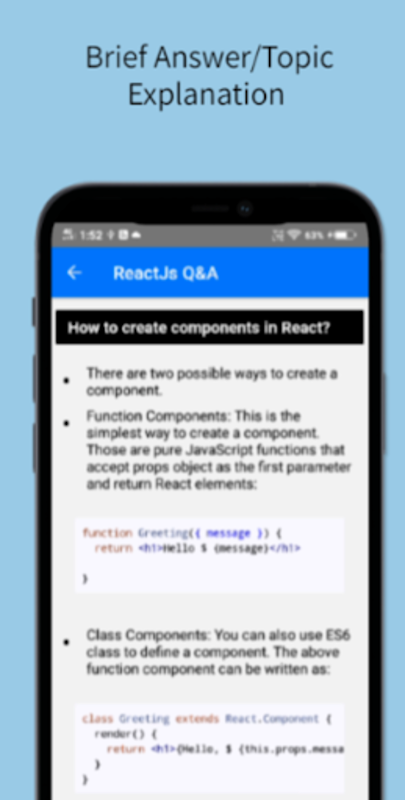 यह एप्लिकेशन आपको विभिन्न कोड उदाहरणों, रीयल-टाइम प्रोजेक्ट्स, साक्षात्कार प्रश्न, रीयल-टाइम परिदृश्य इत्यादि के साथ फ्रंटएंड फ्रेमवर्क के विभिन्न विषयों से परिचित कराता है।