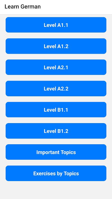 हमारा फ्री जर्मन ग्रामर एक्सरसाइज ऐप विशेष रूप से A1, A2 और B1 के स्तर के शिक्षार्थियों के लिए बनाया गया है। चाहे आप नौसिखिए हों या पहले से ही कुछ ज्ञान रखते हों, यह इंटरएक्टिव प्लेटफॉर्म आपके जर्मन कौशल को प्रभावी ढंग से बढ़ाने में आपकी मदद करेगा।