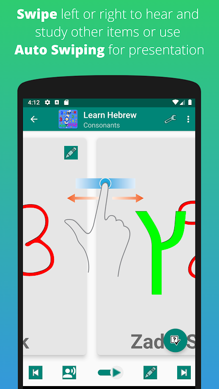 जानें हिब्रू वर्णमाला ऐप आपको हिब्रू वर्णमाला सीखने में मदद करने के लिए जल्दी और आसानी से दृश्य और श्रव्य का उपयोग त्वरित सीखने के लिए और लेखन अभ्यास के साथ संयुक्त है - नया जोड़ सभी को समझने में सक्षम होने के लिए हाथ से लिखने और प्रिंट करने के लिए शानदार अभ्यास के लिए क्विज़ मोड है हिब्रू लिपियाँ आसानी से।