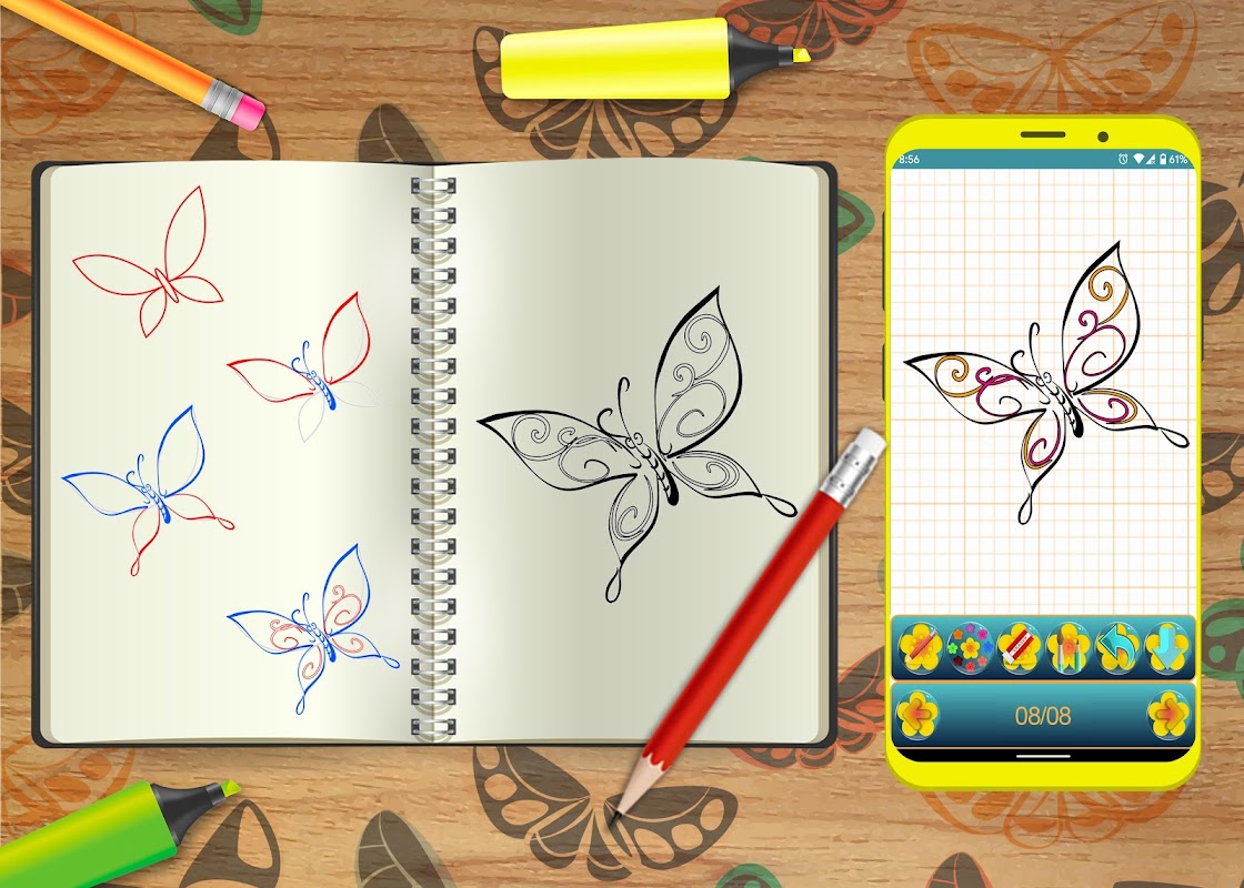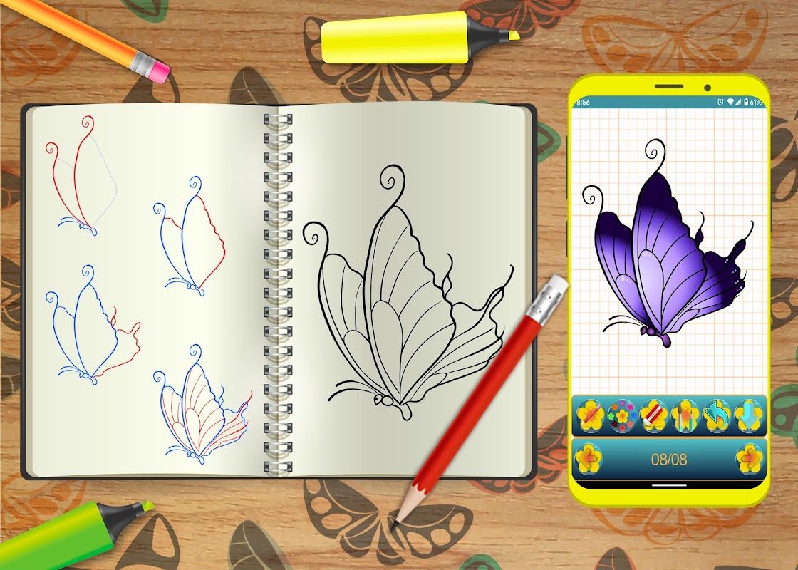 How to Draw and Color Beautiful Butterfly app is a personal art teacher, it will teach you how to draw a butterfly in easy steps.