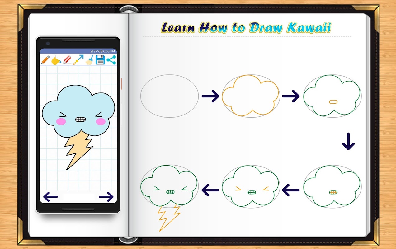 If you want to draw beautiful kawaii anime but you did not know how to draw, no worries. This drawing tutorial for kids application will provides some of adorable kawaii drawing step by step and don't need any special skills, it’s self-teaching.