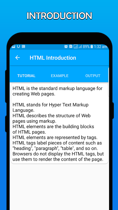 HTML Tutorial App is a comprehensive basic tutorial complete guide to one of the most popular programming languages in the world. you’ll learn object-oriented web programming and have the ability to write clear and valid code in almost no time at all. So don't hesitate. Begin our step-by-step tutorial today, and learn a new skill!