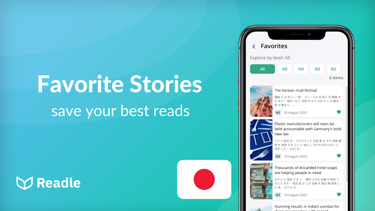 शुरुआती N5 से उन्नत N2 JLPT स्तरों तक अपने कौशल को बढ़ाते हुए, वास्तविक दुनिया की खबरों और कहानियों में डूब जाएं। कभी भी, कहीं भी जापानी सामग्री पढ़ें और सुनें, और प्रतिदिन केवल 10 मिनट में अपनी शब्दावली का विस्तार करें। रीडल के साथ आज ही नए तरीके से जापानी सीखना शुरू करें!