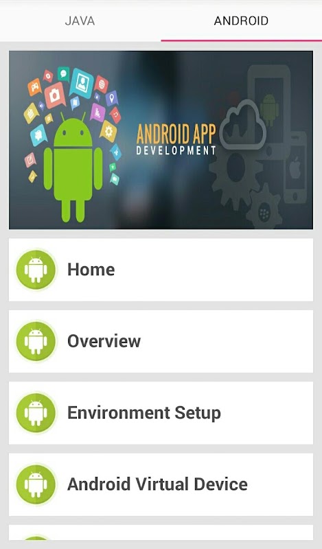 आप जावा और Android बुनियादी अवधारणाओं से प्रोग्रामिंग स्तर अग्रिम सीख सकते हैं।