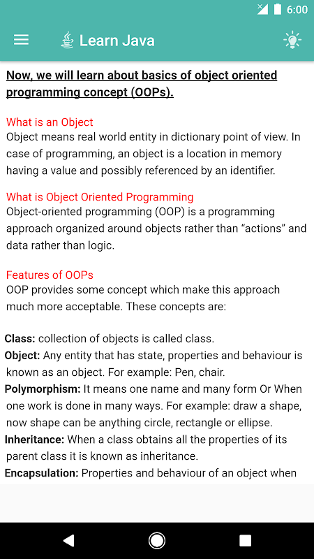 "Java Tutorial" is a complete Java Learning Guide containing all detailed topics of Core Java with pictorial outputs, representations, charts, diagrams and programs. The content of this java tutorial app having a great focus on simplicity, easy to understand language, basic programming example for every topic. Vastly described OOPS concepts. So learn java on the go anywhere.
