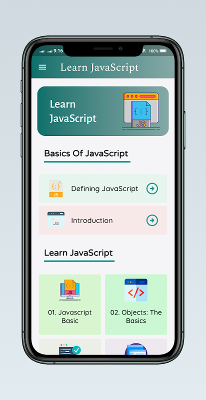जानें जावास्क्रिप्ट, जावास्क्रिप्ट सीखने के लिए एक निःशुल्क एप्लिकेशन है और इसका यूआई आसानी से समझने के लिए उपयोगकर्ता के अनुकूल बनाया गया है।