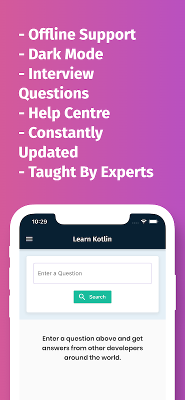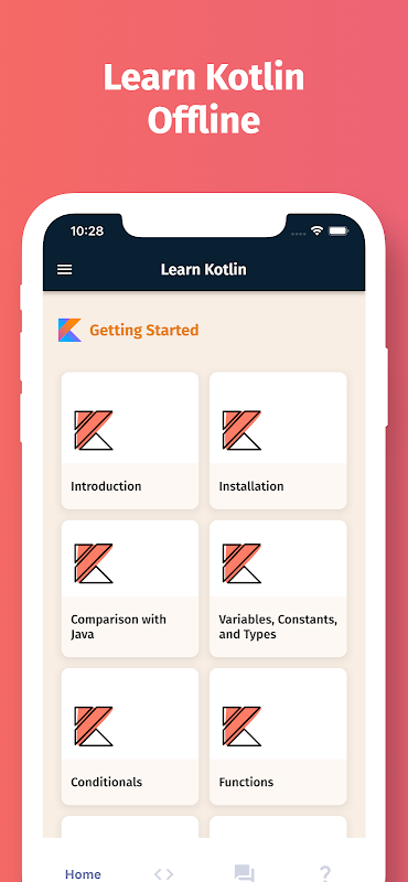 यह ऐप आपका सबसे अच्छा दोस्त बनने जा रहा है। इस ऐप में कोड उदाहरणों के साथ कोटलिन प्रोग्रामिंग भाषा के सभी प्रमुख विषय शामिल हैं। इसके सुंदर यूआई और सीखने में आसान गाइड के साथ आप कुछ ही दिनों में कोटलिन प्रोग्रामिंग सीख सकते हैं, और यही इस ऐप को अन्य ऐप से अलग बनाती है। हम हर नई प्रमुख कोटलिन भाषा रिलीज के साथ इस ऐप को लगातार अपडेट कर रहे हैं और अधिक कोड स्निपेट जोड़ रहे हैं।