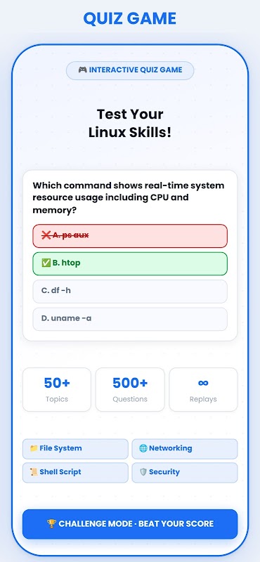 ✅ लिनक्स क्विज़ गेम – विषयवार मजेदार इंटरैक्टिव लिनक्स क्विज़