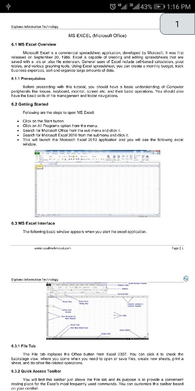 This app contains basic notes to learn MS Excel Spreadsheet software.