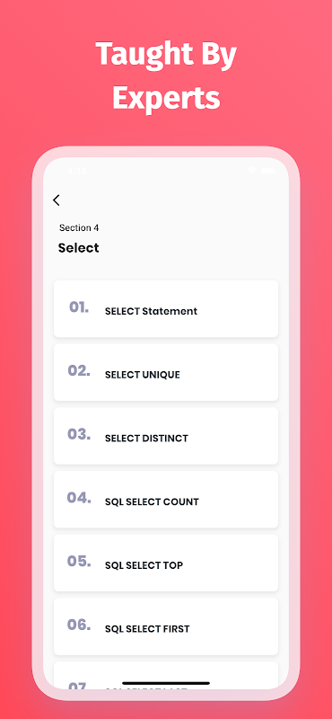 MySQL डेटाबेस, SQLite, SQL, MySQLi, PL/SQL ऑफ़लाइन और बहुत कुछ सीखें। PHP और Java में MySQL के साथ काम करना सीखें। MySQL व्यवसायों के लिए एक लोकप्रिय डेटाबेस प्लेटफॉर्म है क्योंकि इसका उपयोग करना बेहद आसान है। कोड उदाहरणों के साथ मुफ्त में MySQL प्रोग्रामिंग सीखें - शुरुआती के लिए उन्नत डेवलपर्स के लिए पूर्ण MySQL ट्यूटोरियल। इस ऐप में उत्कृष्ट कोड उदाहरणों और परियोजनाओं के साथ MySQL सीखने के लिए सभी प्रमुख विषय शामिल हैं।