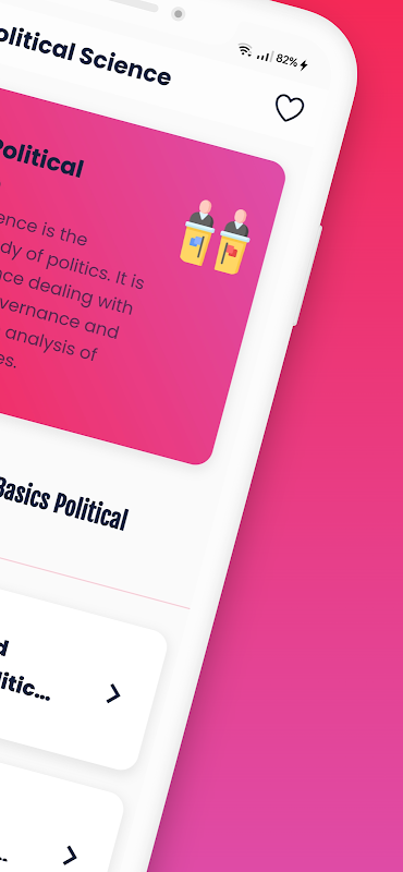 यह ऐप छात्रों द्वारा राजनीति विज्ञान के कई क्षेत्रों जैसे अंतर्राष्ट्रीय संबंध, तुलनात्मक राजनीति, राजनीतिक दर्शन के लिए डिज़ाइन किया गया है। लर्न पॉलिटिकल साइंस पॉलिटिकल साइंस सीखने के लिए एक पेशेवर ऐप है जो लोगों को बहुत आसानी से समझने में मदद करता है। राजनीति विज्ञान को सीखने के लिए डिज़ाइन किया गया है