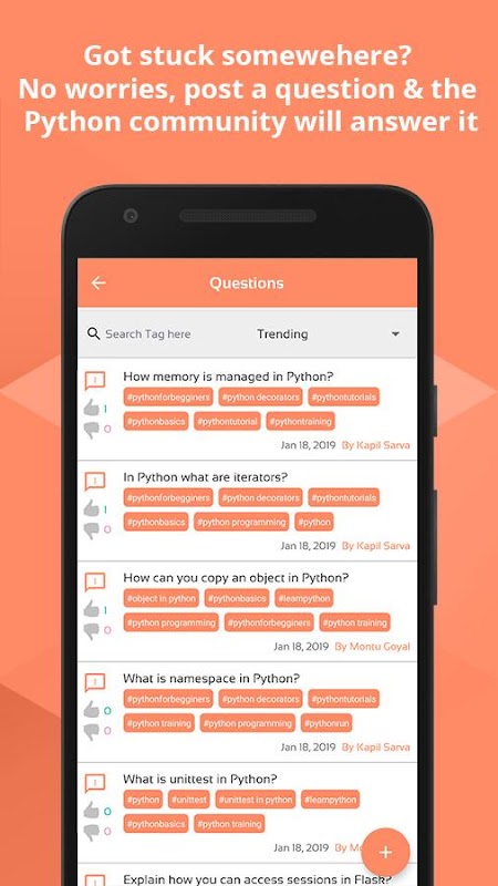 वीडियो ट्यूटोरियल: - यह ऐप पायथन से संबंधित विषयों पर सैद्धांतिक और व्यावहारिक दोनों वीडियो प्रदान करता है। वीडियो विषय और उसकी अवधारणा को समझने के लिए इंटरैक्टिव तरीका प्रदान करते हैं।