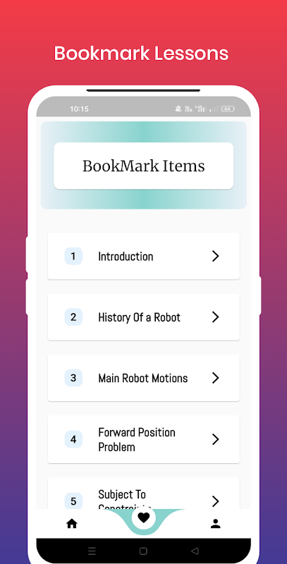 आगे आप उन सभी विषयों को देखते हैं जिन्हें आप ढूंढ रहे हैं। लर्न रोबोटिक्स इंजीनियरिंग ऐप में उन विषयों के बारे में सभी सामग्री है। लर्न रोबोटिक्स इंजीनियरिंग ऐप के उपयोग से आप उन विषयों, रोबोट की तकनीकों, कार्य, स्थिति, प्रक्षेपवक्र आदि को आसानी से अपने शिक्षक या साथियों के सामने समझा सकेंगे।