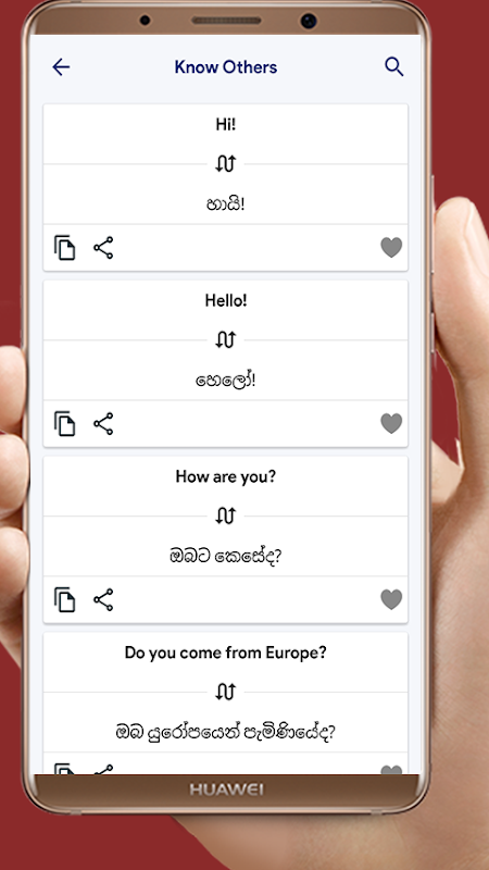 It is FREE learning app from Sinhala to English and English to Sinhala. You can learn even difficult words, phrases sentences in few seconds. This app is helpful for tourists and travelers for learning basics of foreign language.