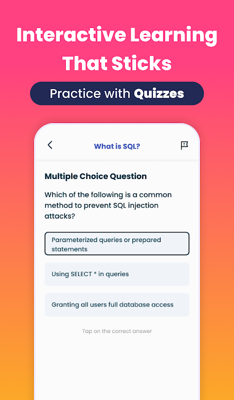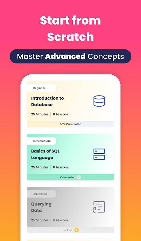 कोई पूर्व कोडिंग या डेटाबेस अनुभव की आवश्यकता नहीं है। चाहे आप पहली बार प्रोग्रामिंग सीख रहे हों या अपने टूलकिट में SQL जोड़ रहे हों, यह ऐप आपको हर कदम पर मार्गदर्शन करेगा।