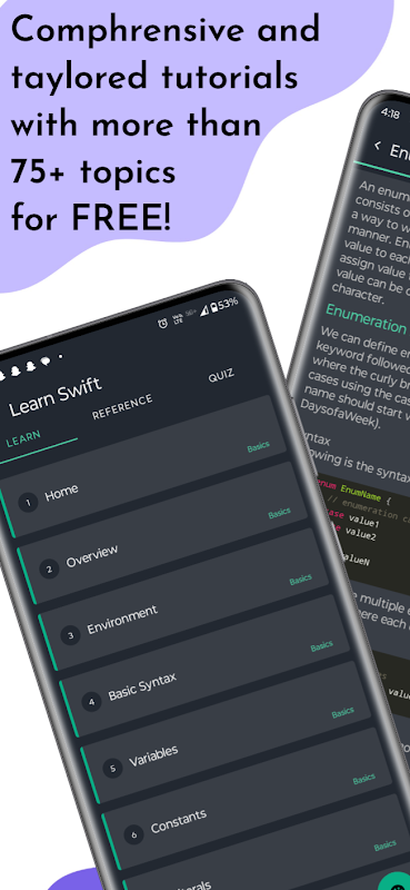 क्या आप स्विफ्ट प्रोग्रामिंग में सहजता से महारत हासिल करने के लिए उत्सुक हैं? आगे कोई तलाश नहीं करें! हम स्विफ्ट सीखने को आसान बनाने के लिए डिज़ाइन किया गया सर्वश्रेष्ठ एंड्रॉइड ऐप 'लर्न स्विफ्ट' पेश करते हुए रोमांचित हैं। चाहे आप शुरुआती हों या अनुभवी कोडर, इस ऐप में सभी के लिए कुछ न कुछ है।