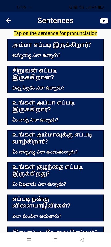 यह ऐप तेलुगु बोलने वालों को तमिल सीखने का एक त्वरित और प्रभावी तरीका प्रदान करता है।