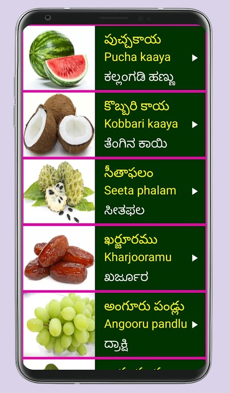 2. कन्नड़ के माध्यम से तेलुगु सीखना आसान बनाने के लिए प्रत्येक तेलुगु शब्द की एक स्पष्ट छवि 📸🖼️ और ऑडियो उच्चारण है।