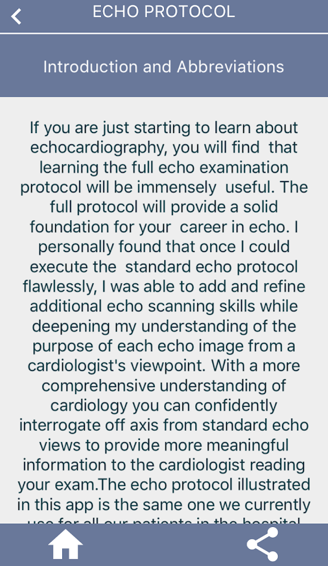 Learn the full echo ultrasound protocol that meets and exceeds the IAC Standards and Guidelines for Echocardiography Accreditation. Just starting to learn echocardiography or need a quick refresher for that echo job interview? This app will quickly get you up speed on the full TTE (transthoracic echocardiogram) protocol currently used in a major hospital from a practicing echo technologist's point of view while also providing the starting cardiac sonographer with a concise, detailed "how to" guideline on a complete echo exam. The app consists of over 90% video clips displaying proper views and also showing the most common abnormal cardiac pathology (e.g. aortic stenosis) that an echo tech will likely encounter and what to do.