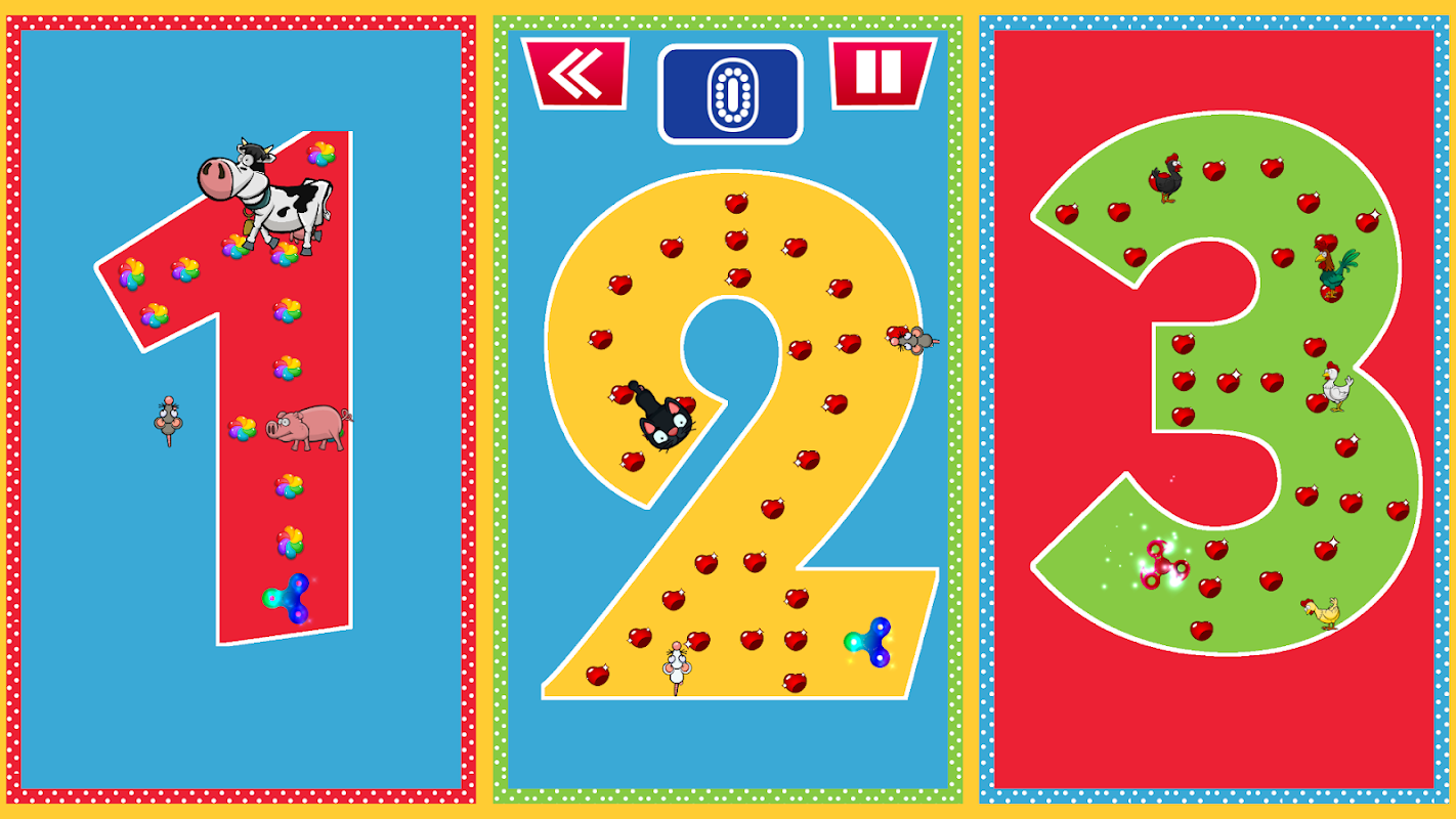 अपनी उंगली से एक फिजेट स्पिनर को नियंत्रित करें और अंक एकत्र करते समय और जानवरों से बचते हुए अक्षरों और संख्याओं का पता लगाएं!