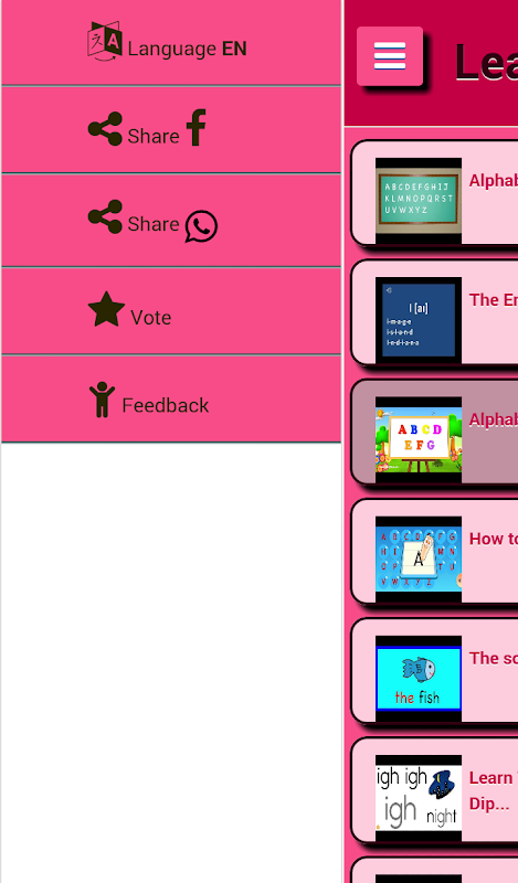इसके अलावा, आवेदन स्पेन, इंग्लैंड के लिए सामग्री है, संयुक्त राज्य अमेरिका, पुर्तगाल, ब्राजील, फ्रांस, इटली और जर्मनी के रूप में यह स्पेनिश, अंग्रेजी, पुर्तगाली, फ्रेंच, इतालवी और जर्मन में अनुवाद किया गया है, घर स्क्रीन पर केवल एक क्लिप के साथ कर सकते हैं भाषा है कि आप आवेदन की तरह का चयन और इन सभी भाषाओं में है कि आप उल्लेख किया है, एक महान समर्थन आप सबसे महत्वपूर्ण सबक हम है के अलावा, इन भाषाओं में से किसी के अध्ययन में आरंभ करना चाहते हैं, तो होने में वीडियो को पा: एकाक्षर स्वर , पी, वर्णमाला, शब्दावली, वर्णमाला और संख्या, कैसे पढ़ने पढ़ाने के लिए, अंग्रेजी, वीडियो ट्यूटोरियल में सभी महान सामग्री पढ़ने के लिए शिक्षा और रीडिंग के साथ अपने बच्चों के प्रशिक्षण में एक महान समर्थन होने के लिए सीखने के साथ सिलेबल्स