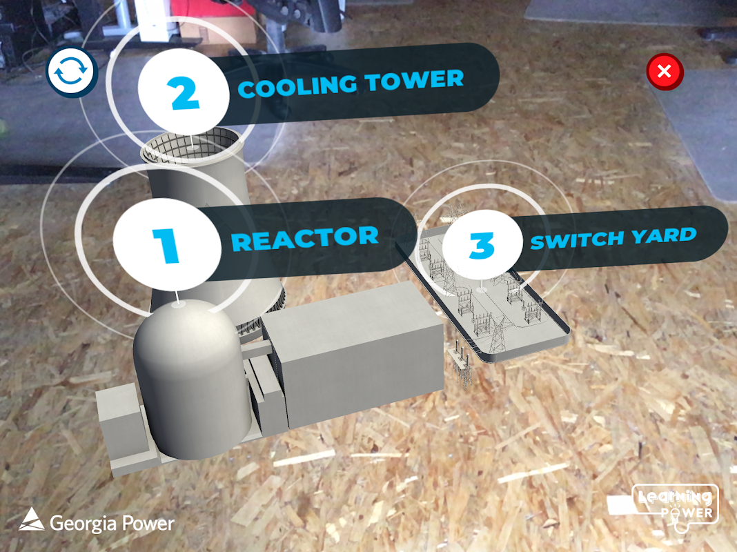 संवर्धित वास्तविकता ऊर्जा को अगले स्तर तक ले जाती है! जॉर्जिया पावर के लर्निंग पावर प्रोग्राम के लिए बनाए गए, ये एआर गेम हाई स्कूल के छात्रों को स्मार्ट पावर ग्रिड और परमाणु ऊर्जा संयंत्र के माध्यम से एक आभासी यात्रा पर ले जाते हैं. ये 3D मॉडल छात्रों को विद्युत ऊर्जा वितरण और परमाणु ऊर्जा संयंत्र उत्पादन को समझने में मदद करते हैं.