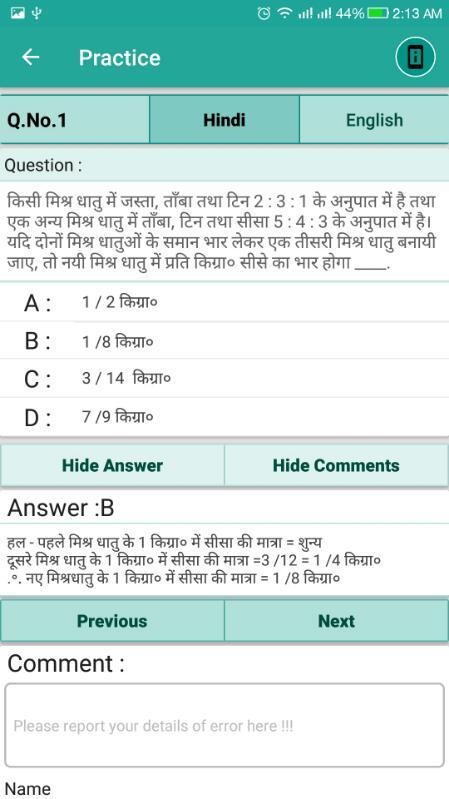 • प्रश्न दो भाषाओं (हिंदी / अंग्रेजी) में उपलब्ध