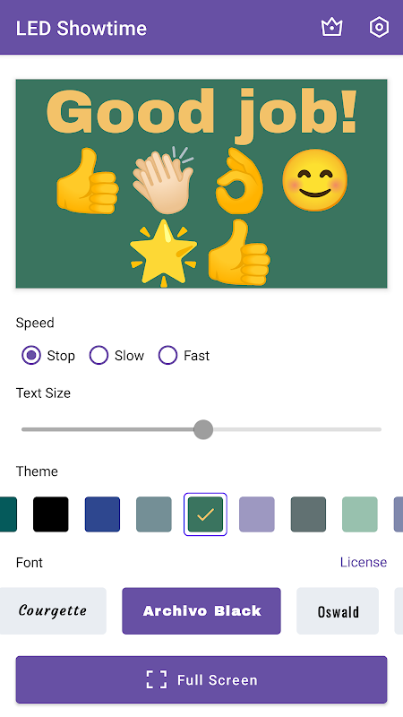 फ़ुल-स्क्रीन मोड: इमर्सिव LED बैनर विज़ुअल्स के साथ अपने संदेश को स्टार बनाएँ।