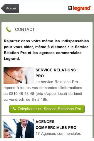 Cette application vous offre des services similaires au site legrand.fr vous pouvez vous tenir informé à tout moment et accéder gratuitement au e-catalogue tarifé.