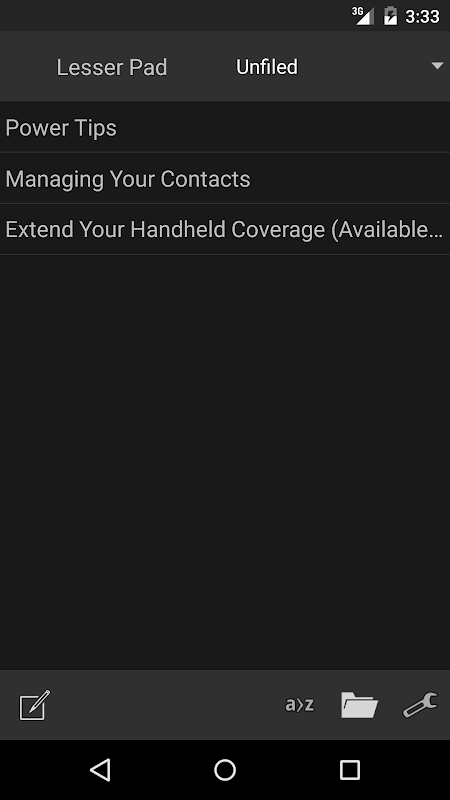 * जब आप स्क्रीन के नीचे बाईं ओर (हनीकॉम्ब या उच्चतर में एक्शनबार पर) "नया" बटन दबाते हैं, तो एक नई टेक्स्ट फ़ाइल बना सकते हैं।