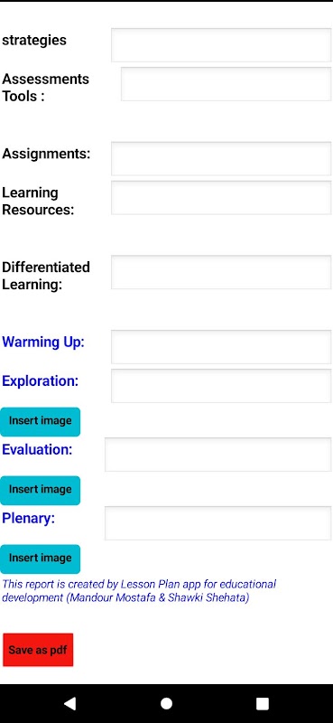 यह ऐप अरबी और अंग्रेजी दोनों भाषाओं में शिक्षकों के लिए डिजिटल दैनिक पाठ योजना प्रदान करता है, शिक्षक चित्र सम्मिलित कर सकते हैं, और वे आसानी से अपना पाठ योजना पाठ लिख सकते हैं। अंत में फाइल को पीडीएफ एक्सटेंशन के रूप में सेव किया जा सकता है।