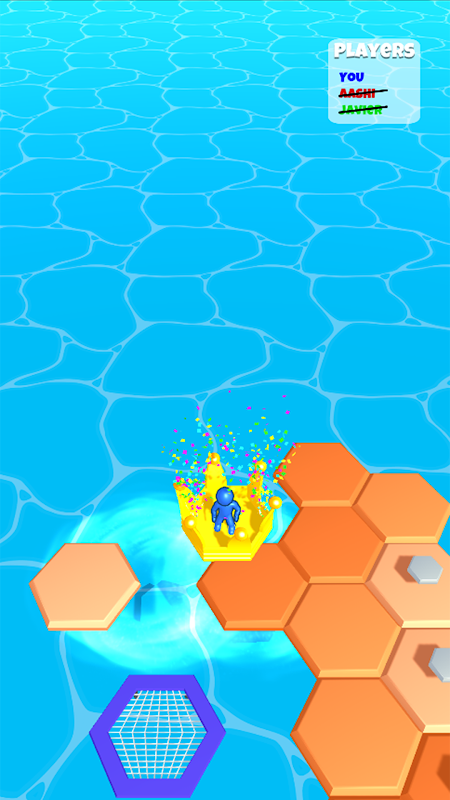 Prepare your strategy to let all your opponents fall to the water by running over breakable objects beneath you.