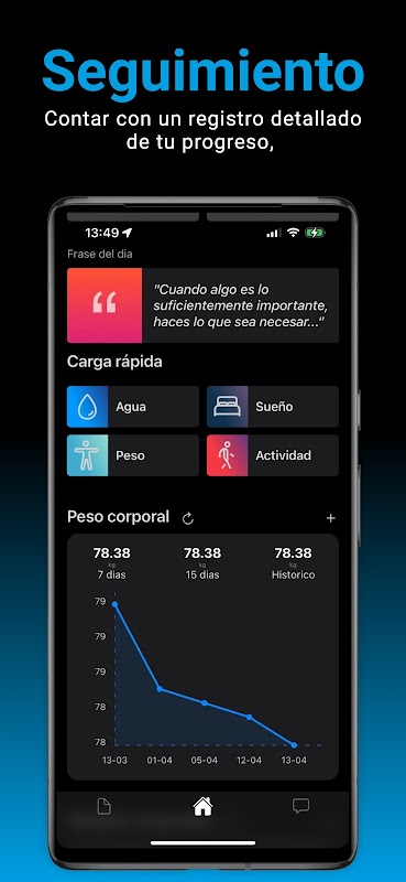 प्रगति लॉग: अपने शरीर के वजन, शरीर के माप और दैनिक कदमों पर नज़र रखें। समय के साथ अपनी प्रगति को दृष्टिगत रूप से देखें और अपने लक्ष्यों तक पहुँचने के लिए अपनी प्रेरणा ऊँची रखें।
