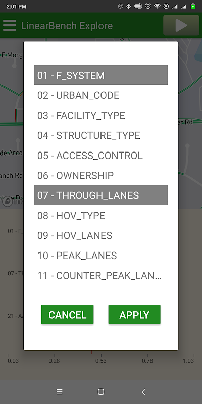 With LinearBench Mobile on phones or tablets, highway transportation professionals can access highway attributes or events such as AADT, Functional Systems, Number of Lanes, etc. through the intuitive SLD (Straight Line Diagramming) and Map UI while driving or infield.