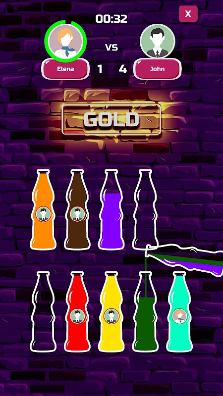 जितना हो सके रंगीन तरल को बोतलों में छाँटें और दूसरों को हराएँ