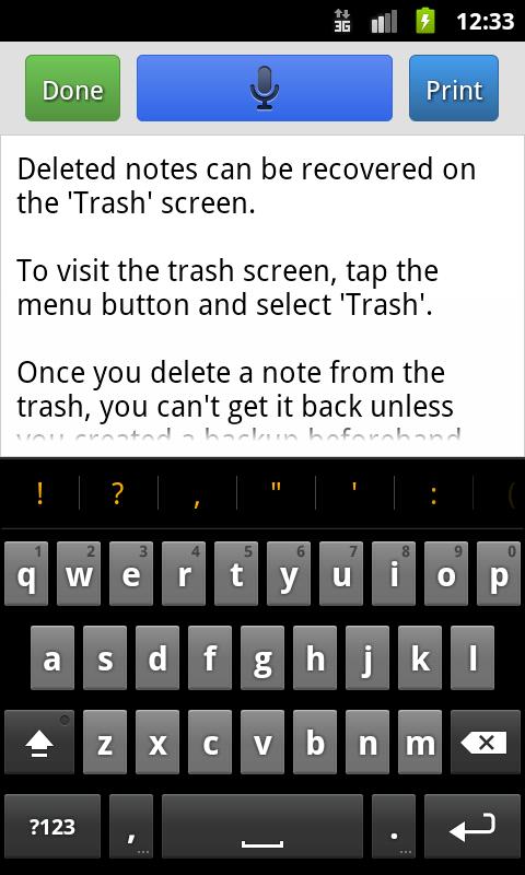 होम स्क्रीन विजेट (जल्दी से भाषण नोट्स और नोटों की आवाज खोज जोड़ने के लिए)