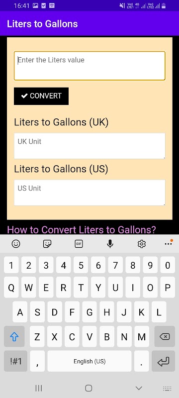 छात्रों और शिक्षकों के लिए वास्तव में सरल लीटर से गैलन रूपांतरण ऐप