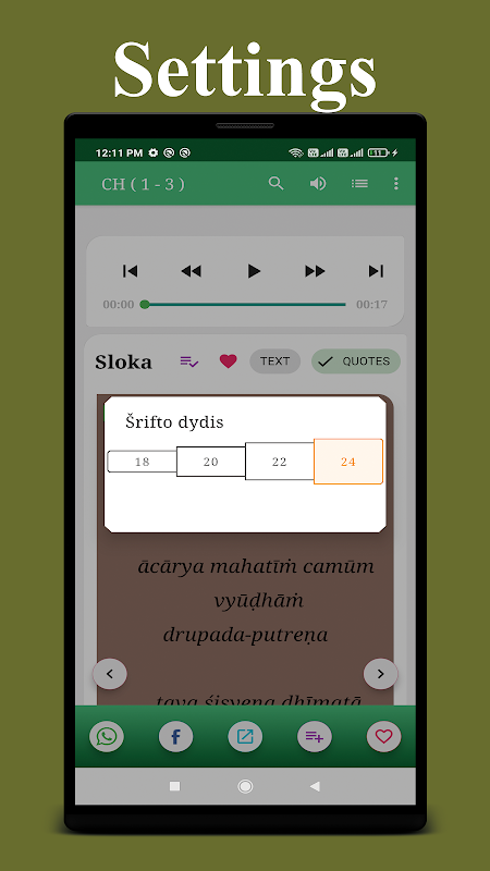 The app has many features to facilitate the reader with utmost comfort and ease to read the contents of Lithuanian Bhagavad Gita. Some of the features are as follows: