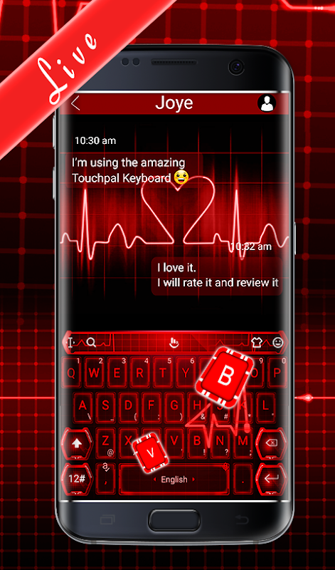 TouchPal इमोजी के लिए नई निशुल्क Hati Neon Merah कुंजीपटल थीम मज़े टाइपिंग!