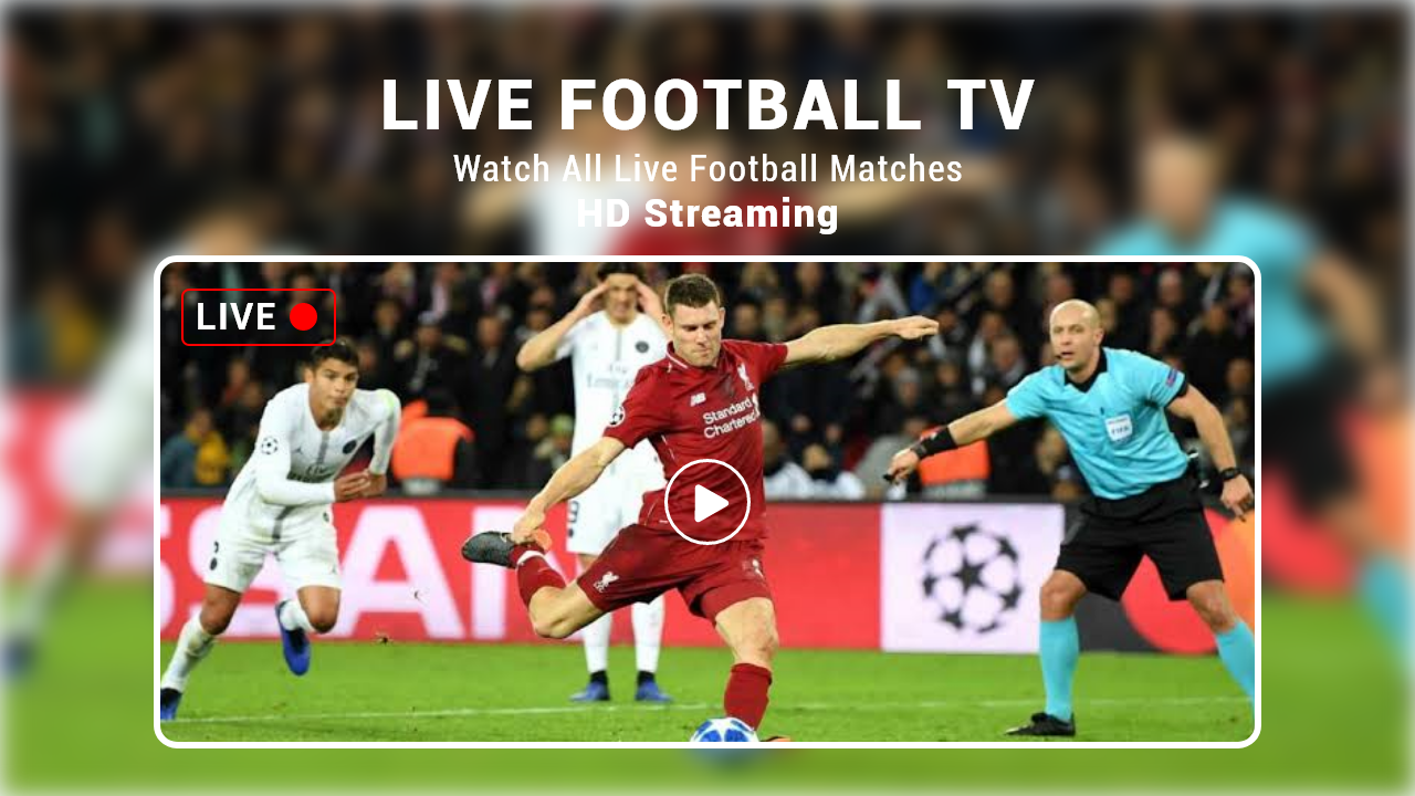 Live Football TV HD Streaming - is free app for football lovers who can not miss the thrill of watching Live football. This is an easy to use App on which you can watch all the football matches happening Live. Enjoy live streaming of Football-soccer matches in HD quality for high speed Internet and low quality for 3G users.
