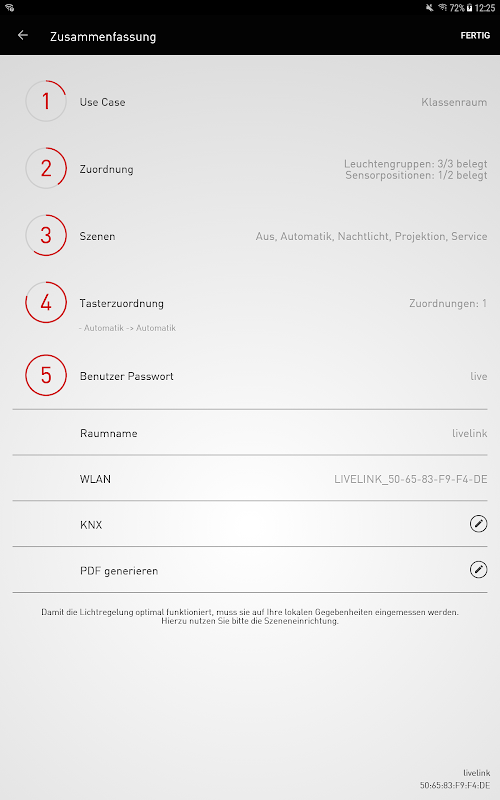 लाइवलिंक इंस्टाल लाइवलिंक को चरण दर चरण चालू करने में आपका मार्गदर्शन करता है। बुद्धिमान नियंत्रण और प्रतिक्रिया कार्य आपको अधिकतम सुरक्षा प्रदान करते हैं और प्रकाश प्रबंधन प्रणाली को जल्दी, सुरक्षित और आसानी से कॉन्फ़िगर करने की अनुमति देते हैं। आप बिना पूर्व योजना के प्रकाश प्रबंधन प्रणाली को चालू करने के लिए कई मानक कमरे की स्थितियों में ऐप के मानक उपयोग के मामलों का उपयोग कर सकते हैं।