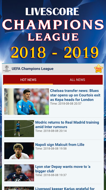 "Livescore Championship" app provides you with the latest and comprehensive soccer news, live scores, match videos and highlights. With "Livescore Championship" app, you can follow your favorite teams and players, get live scores and results from all the matches and competitions as well as the latest soccer news all around the world. Everything you need to know about soccer, all at your fingertips.