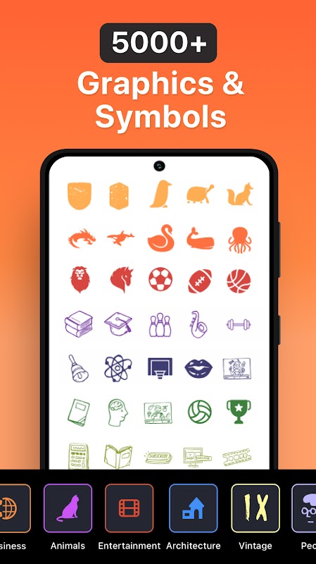 लोगो मेकर ऐप में 6,000 से अधिक डिज़ाइन टेम्पलेट हैं, जिनमें फ़ॉन्ट, प्रतीक, आकार, आइकन और पृष्ठभूमि शामिल हैं। आपको भीड़ से अलग दिखने वाले शानदार पेशेवर लोगो को संपादित करने और बनाने की क्षमता देने के लिए प्रत्येक संसाधन को सावधानीपूर्वक चुना और तैयार किया गया है।
