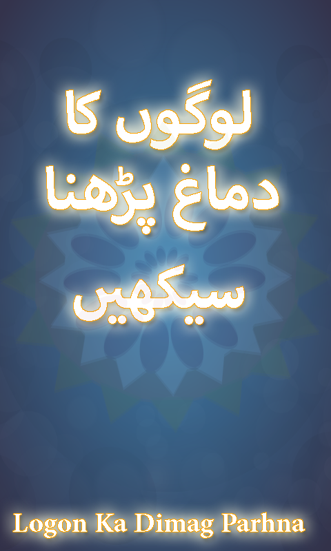Read offline book " Logon Ka Dimag Parhna Seekhen " . in this app you can read other people mind in urdu provide tips and tricks to read mind of somone in best way. Free download or read offline Urdu book complete logo ka dimag or logon ka dimag parhna