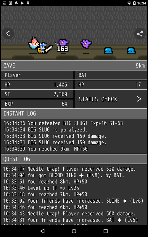 (3) खिलाड़ी लड़ाई पर नज़र रखता है या ऐप से बाहर निकलता है।